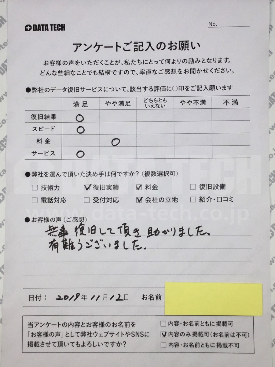 【データ救出率】100% 不良セクターなし